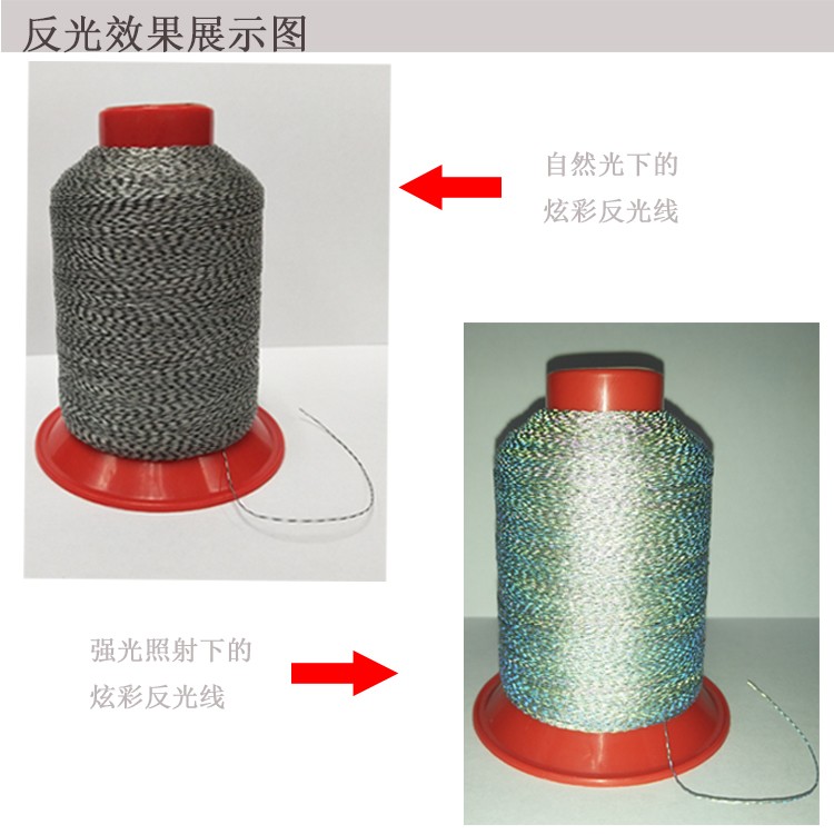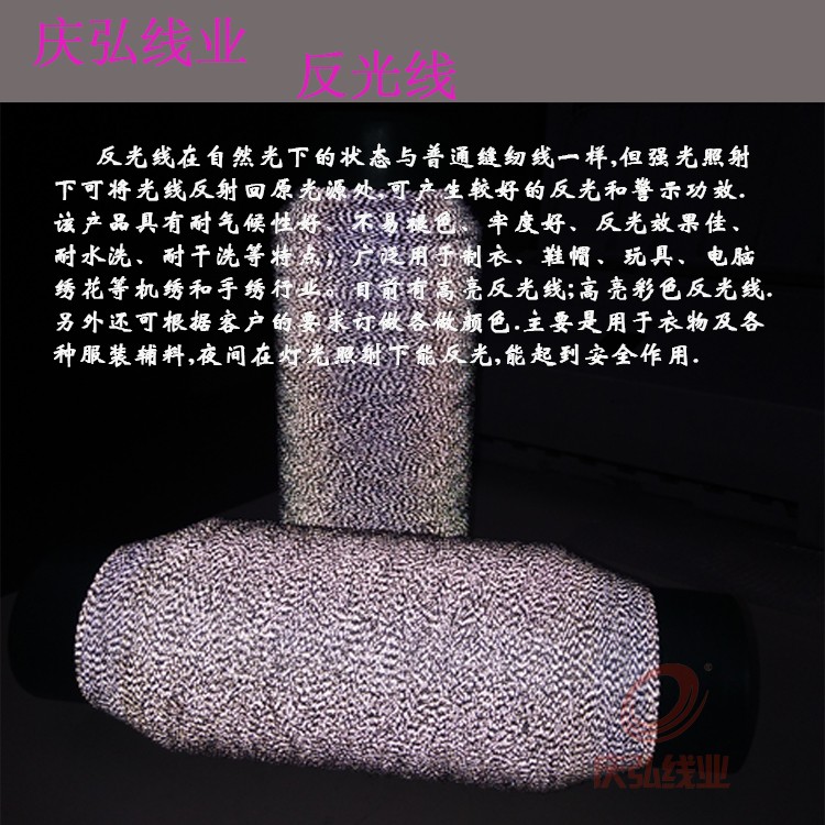 反光線就是在線(xiàn)裏麵植(zhí)入反光絲,利用反光絲能將光線反射回原光源處(chù),可(kě)產生較好的反光(guāng)和警示功效.該(gāi)產品具有耐氣候性好(hǎo)、不易(yì)褪色、牢度好、反(fǎn)光效果佳、耐水(shuǐ)洗、耐幹洗等特點;廣泛用於製衣、鞋包(bāo)、玩具、電腦繡(xiù)花等機繡和手繡(xiù)行業。